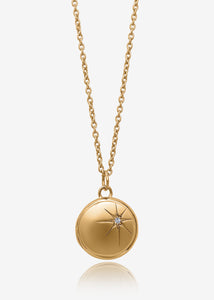 Starstruck. Past meets future with this luxe, heirloom-inspired locket featuring a glistening white topaz starburst. Treasure a memory inside by following our 'How to add a Picture' guide that will arrive with every purchase and/or engrave something secretly meaningful.