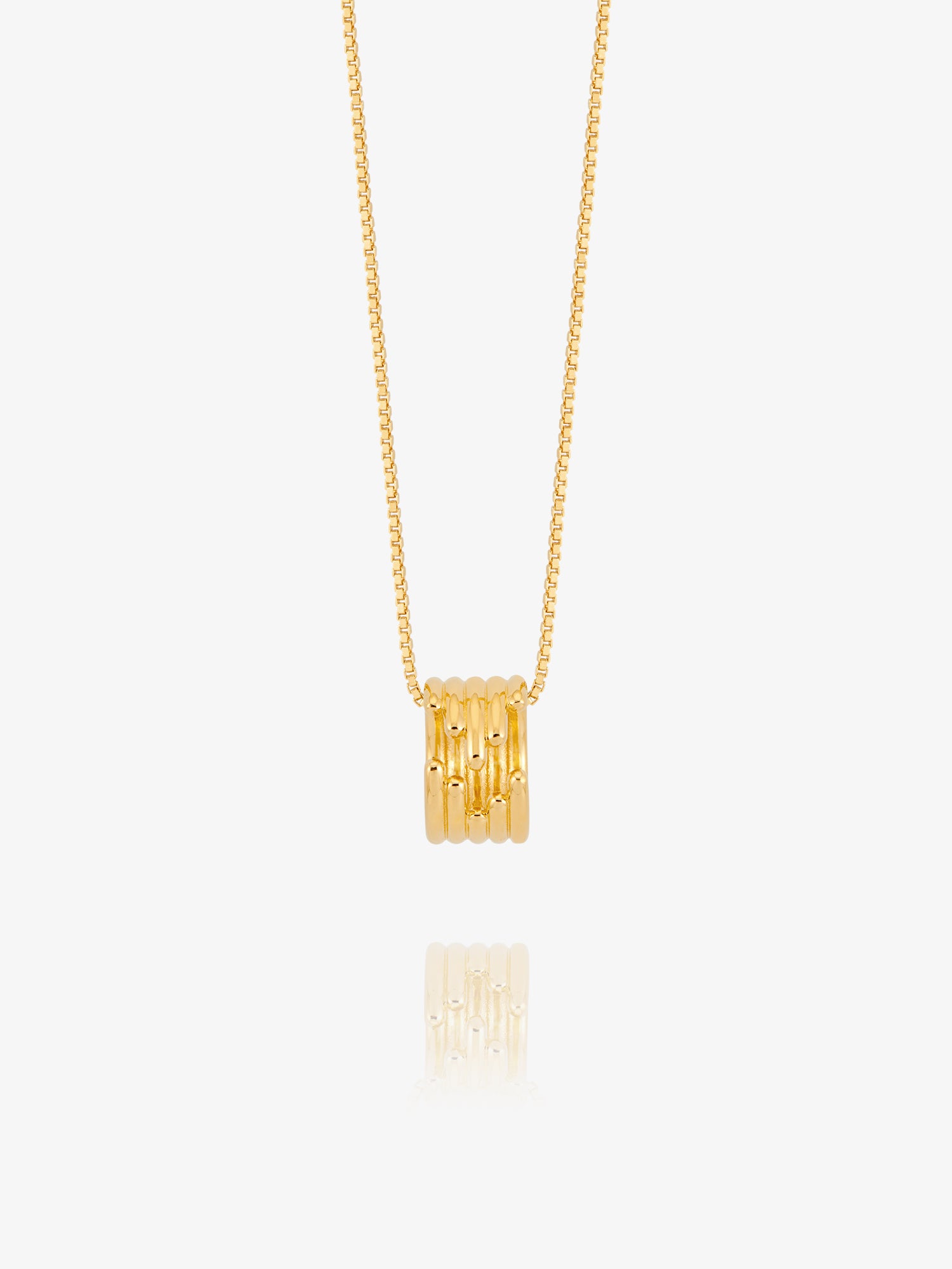 Hand-crafted from 18ct gold-plated recycled silver, this unique, open circle pendant is inspired by French sculptor Bernar Venet and it feaures Art-Deco strands that represent the many facets of womanhood. Finished with an adjustable-length chain for versatile wear.